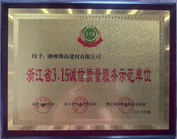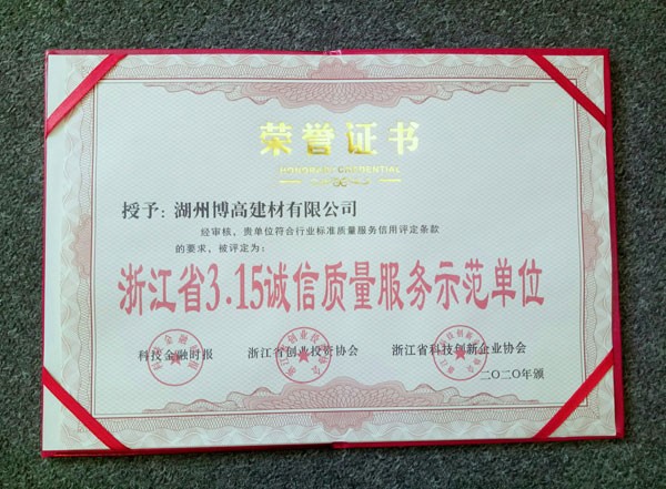 浙江省3.15誠信質量服務示范單位