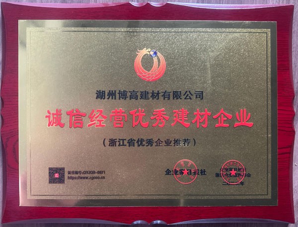 浙江省誠信經營優(yōu)秀建材企業(yè)